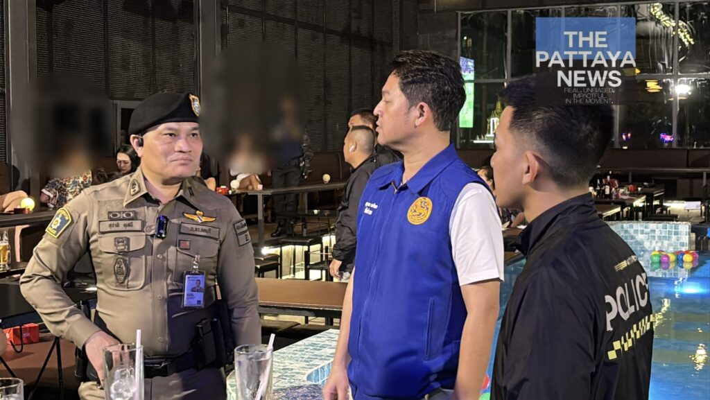 今回の主導者は、バンラムン副地区長の ナッタポーブ・ヨムジンダ氏 と、パタヤ市警察副署長の スチャート・ドゥサディ中佐。両者は多くの警察官や行政職員を率いて、市内の人気ナイトライフ施設を訪問しました。