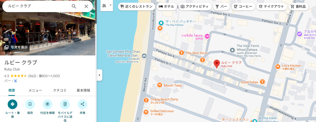 Ruby Clubは、ビーチロードとセカンドロードをつなぐ「Soi 6」の通り沿いに位置している。