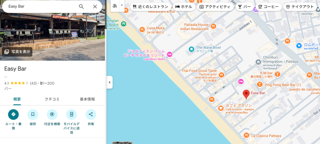 Easy Bar は、パタヤ中心部のSoi6ではなく、ジョムティエンの Soi Jomtien 7 周辺にあるバーです。Facebook の店舗情報、観光ガイド、バー情報サイトの複数ソースでその所在地が確認できます。
