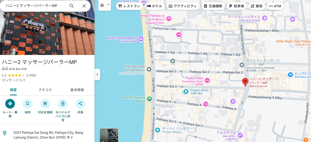 Soi Honeyと呼ばれる通りにあり、パタヤでもアクセスしやすい店舗として知られています。
