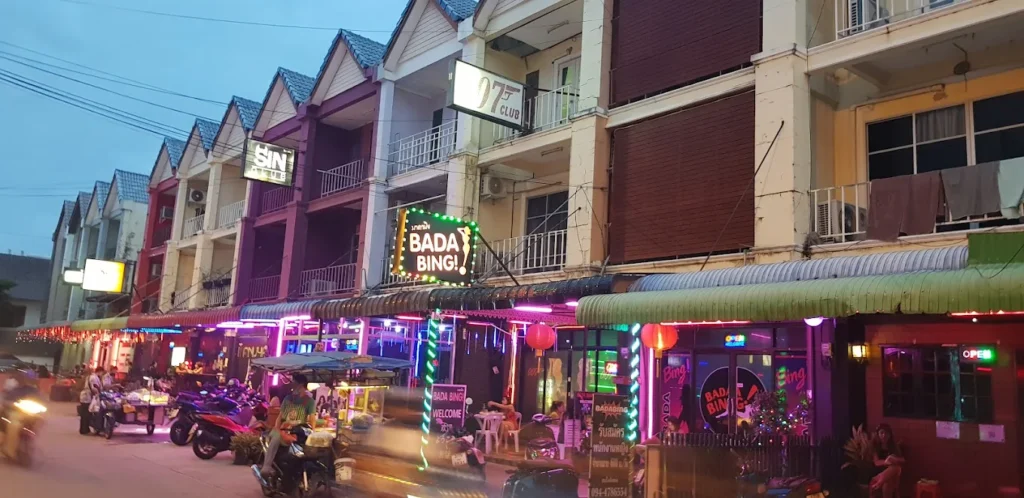 Soiボンコットは、Soiブアカオ周辺から少し外れた場所にあるローカル色の強い夜遊びエリアで、特にジェントルマンズクラブが多く集まっていることで知られています。大型歓楽街のような派手さはありませんが、落ち着いた雰囲気の店が並び、昼間から営業している店舗も多いのが特徴。観光客だけでなく長期滞在者や常連が訪れる場所として注目されています。